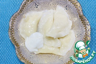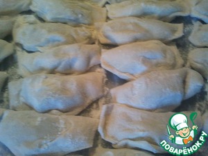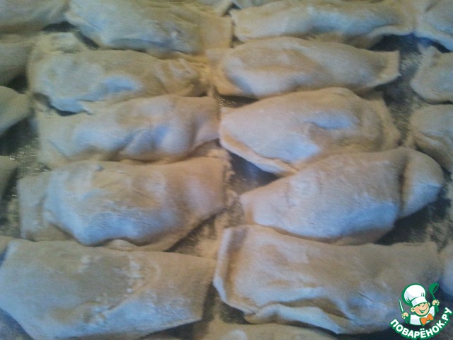Готовые вареники, пересыпав мукой выкладываем на доску.