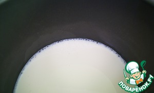 Соевое молоко (даже в нашем маленьком провинциальном городке нашлось в супермаркете на полке рядом с безлактозным молоком) смешиваем с водой и доводим до кипения.