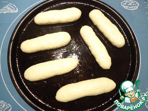 Форму для выпечки смазать растительным маслом, уложить булочки на противень швом вниз. Накрыть заготовки пленкой.