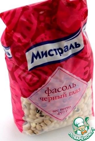 Для приготовления этого салата потребуется фасоль "черный глаз" марки Мистраль.