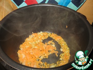 Положить лук и морковь, обжарить