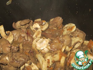 Добавить шампиньоны, продолжать жарить. программу отключить. у меня жарилось 20 минут