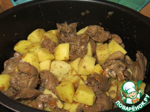 Рецепт «Куриная печень с овощами и грибами»: