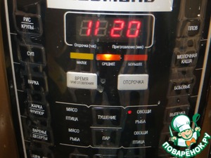 Закрыть крышку и клапан выпуска пара ( давление высокое). программа тушение, овощи. время среднее 20 минут