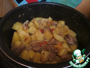 Картофель крупно порезанный положить в чашу мультиварки, перемешать.