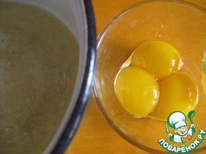 Добавить крахмал, сахара 3 ст. л., цедру и 2 желтка. Взбить еще раз.