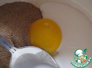 Отруби смешать с одним желтком и кефиром. Это получилась основа чизкейка.