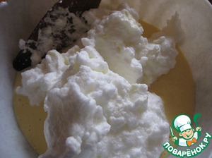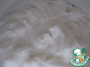 Белковую массу осторожно в несколько приемов ввести в творожно-персиковую.