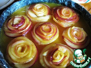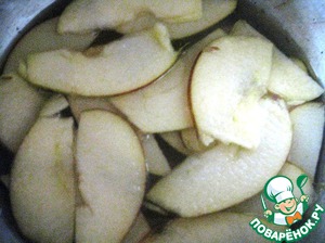 Берем 1 ст. воды и оставшийся сахар. смешиваем и ставим на огонь до полного растворения сахара. После закипания кладем в сироп часть нарезанных ломтиками яблок. держим в кипящем сиропе 1 минуту.