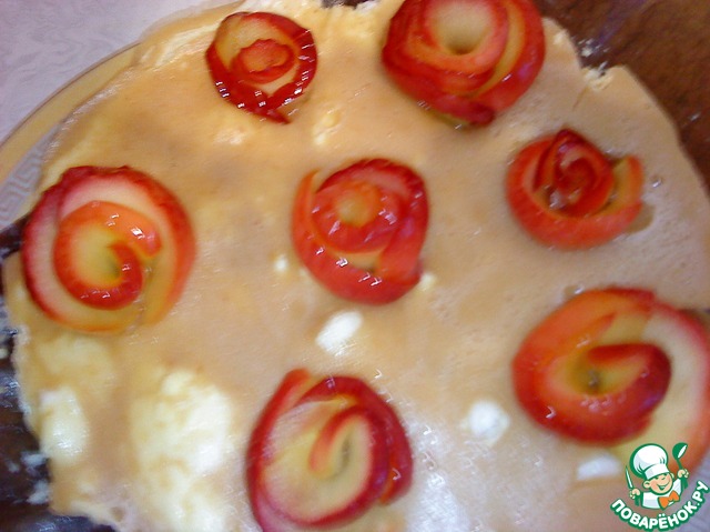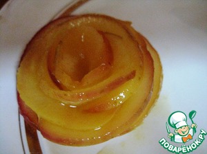 Делаем розу. Берем 1 ломтик, сворачиваем его рулетиком, затем два вокруг первого, затем еще и еще.
