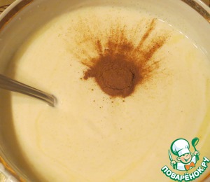 Добавить 1-1,5 стакана сметаны, а также 0,5 ч. л. корицы.
