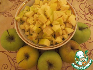 Яблоки очистить, нарезать. Тут уж всё зависит от Вашего вкуса - мне ближе средние размеры по части пирога.