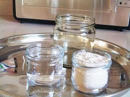 В воду всыпать 100 г (полстакана) муки, перемешать до образования жидкого теста. Добавить соль.
