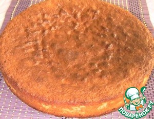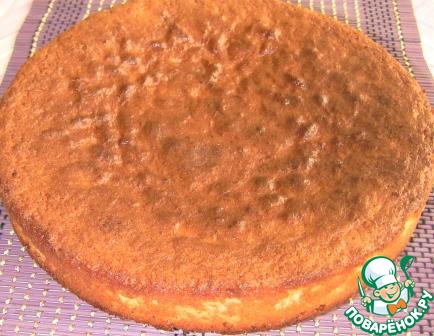 У меня форма большая диаметр 23 см и бисквит не очень высокий. Оставляем остывать. Когда остынет разрезаем на 2-3 коржа.