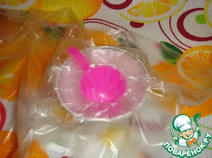 Для того, чтобы приготовить шарики, понадобится маленькая чашка и пищевая пленка. Пленкой выстелить чашку изнутри.