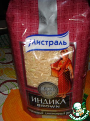 Для этого блюда отлично подходит коричневый рис фирмы "Мистраль". Я вообще давно уже готовлю только коричневый, бурый или дикий рис, причем разных фирм-изготовителей. Но "мистралевский" купила первый раз. Почему я его не покупала раньше? Не знаю. Но он оказался намного вкуснее, чем весь тот, что я покупала раньше. Это - не реклама фирмы, а правда! Так что теперь только"Мистраль"!