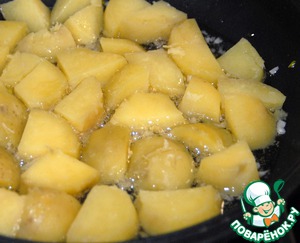 Ломтики картофеля обжариваем на сильно разогретом масле до красивой золотистой корочки. -