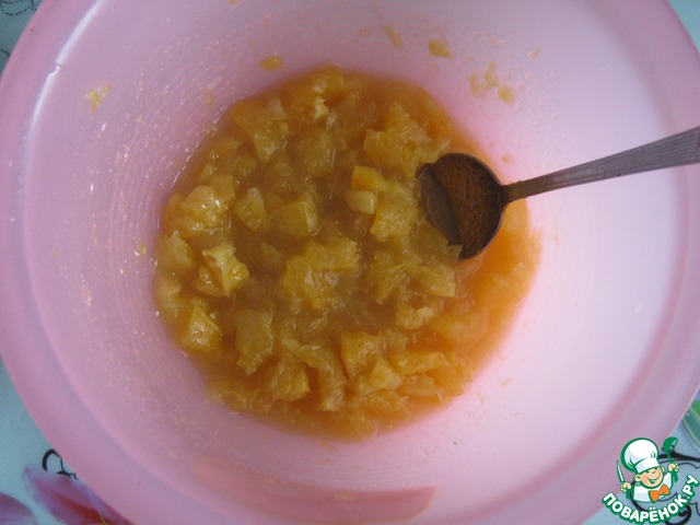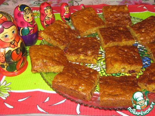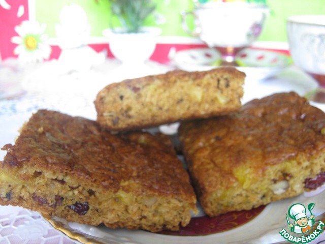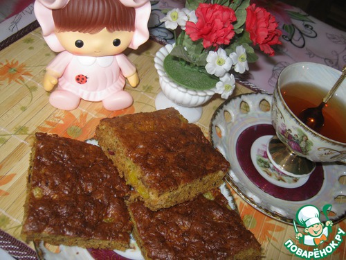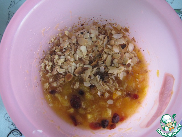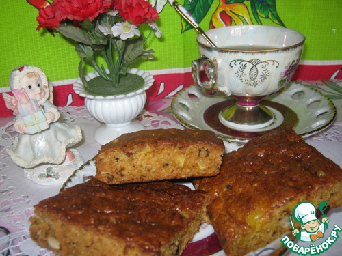 Рецепт «Постный пирог с апельсинами, орехами и цукатами»: