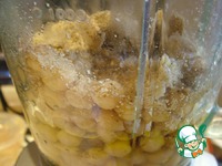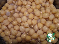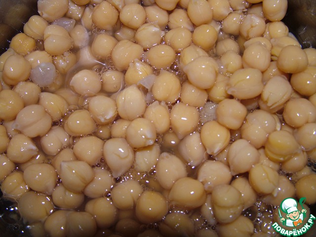 Сварите в достаточном количестве воды на слабом огне в течение часа. Дайте гороху немного остыть, отвар не выливайте! Я не чищу готовый нут, не хочу лишать блюдо полезной клетчатки. |