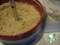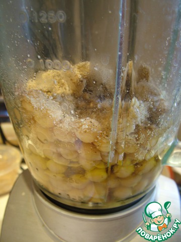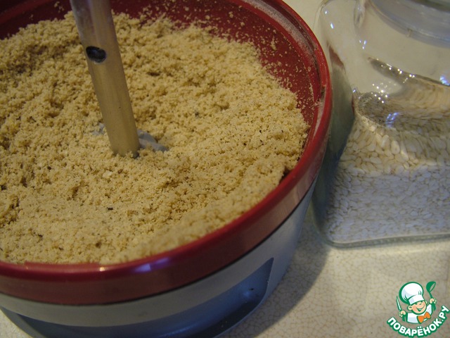 Смолоть кунжут со специями. Это будет замена тхине (кунжутная паста), которая используется в классическом рецепте. |