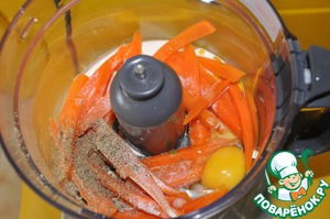 После смешиваем морковь,1 ложку масла, яйцо, сливки, перец и соль.