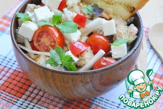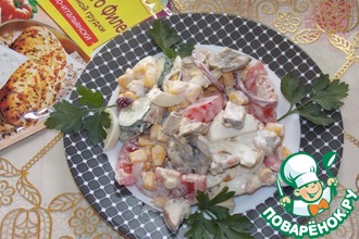 Назвала салат так, потому что сделала его "по мотивам": где-то слышала, что-то читала, или сама ела где-то, смешала всe это - получился такой салат :)