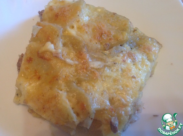 Мясо, запеченное под картофелем а-ля дофине