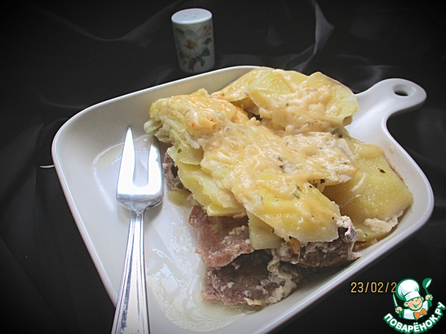 Рецепт «Мясо, запеченное под картофелем а-ля дофине»: