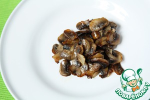 Грибы обжарить на оливковом масле около 5 минут - до золотистой корочки и выложить в центр тарелки, на которой будете сервировать салат.