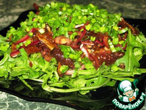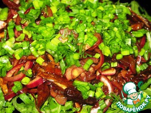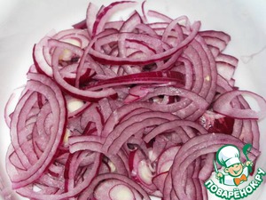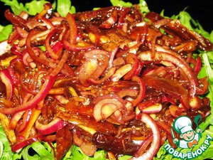 Очень вкусный и полезный салат. Лучок получается маринованным, кисло-сладким. Внесёт приятное разнообразие в постное меню.