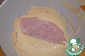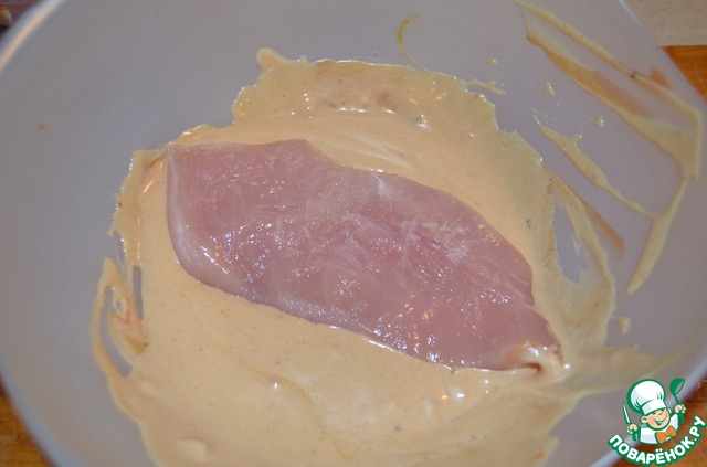 Обмакиваем каждую грудку в маринад и кладем мариноваться минут на 20