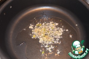 Чеснок мелко нарезать и обжарить в растительном масле на медленном огне в течении 3-5 минут