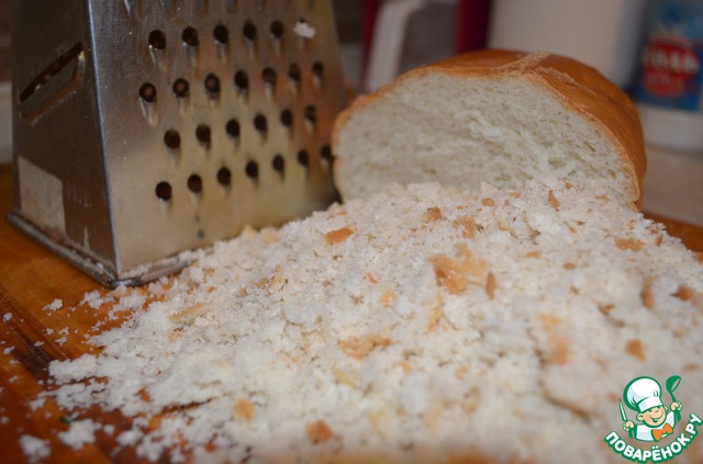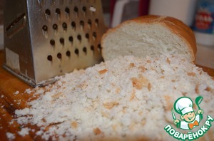 Натереть батон на крупной терке и обвалять в мягких крошках куриное филе. Поставить в горячую духовку на 20минут