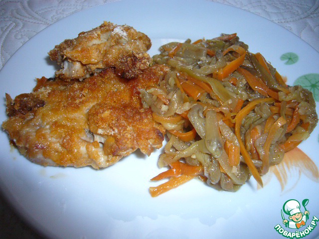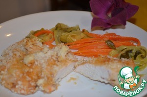 Сегодня в гости ко мне приезжает моя любимая свекровь и очень хочется ее порадовать. А на дворе-опять пришла зима, и уже сугробы за два дня намело- по колено... Поэтому, думаю, мои куриные грудки в панировке из батона и овощные фетучини-самое то весеннее блюдо, которое и глаз радует и душу согревает)))