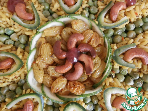 Рецепт «Плов с пчёлками и зелёным горошком»: