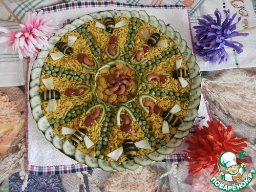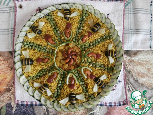 Конечно, Вы можете украсить блюдо так, как больше нравится Вам, ну, а я решил пригласить весну и первых пчёлок - вот на такой солнечный плов!!! -