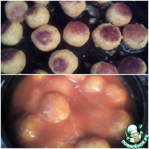 Мокрыми руками формируем тефтельки и обжариваем их в масле.