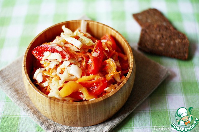 Под таким названием я взяла рецепт из кулинарной книжки, подаренной мне Леной В744НТ, за что ей огромное спасибо! Это действительно рецепт-выручалочка, судите сами. Можно подавать как простую закуску - это раз. Как гарнир к мясу - это два. Как овощной салат - это три. Как заготовку на зиму - это четыре. Главное, что всё получается ооочень вкусно!