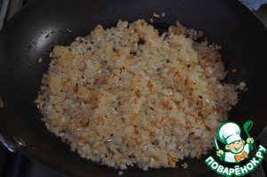 На сковороде с растительным маслом спассеровать до румяности мелко нарезанный лук.