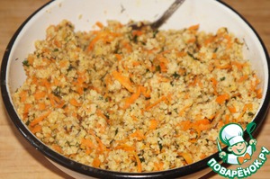 К остывшему пшену добавить пассеровку, соль и перец по вкусу и, если желаете, приправу для голубцов.