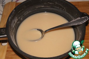 Муку обжарить на сухой сковороде до кремового цвета и появления аромата обжаренных орехов. Поверьте, он обязательно появится. Немного остудить.