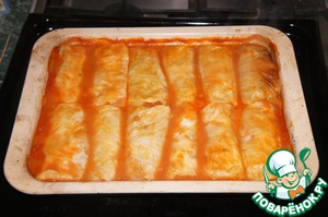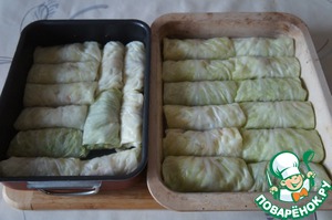 Залить соусом и поставить в горячую духовку. Запекать до готовности, примерно минут 40. В кастрюле голубцы можно просто потушить на небольшом огне на плите.