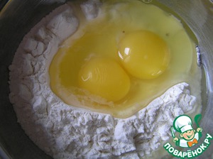 Приготовить тесто. Яйца смешать с мукой и щепоткой соли.