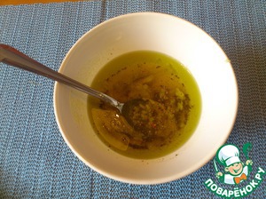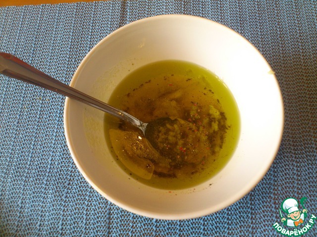 • Для заправки хорошо смешать вместе оливковое масло, уксус, горчицу, протертый чеснок, соль и перец – до однородной массы