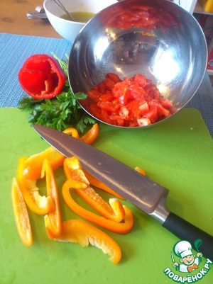 • Нарезать очищенный перец, помидоры, петрушку