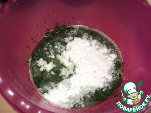 Из шпината, воды, соли, муки замешиваем тесто.