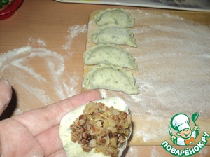 Рецепт «Вареники со шпинатом, гречкой и солёными огурцами»: