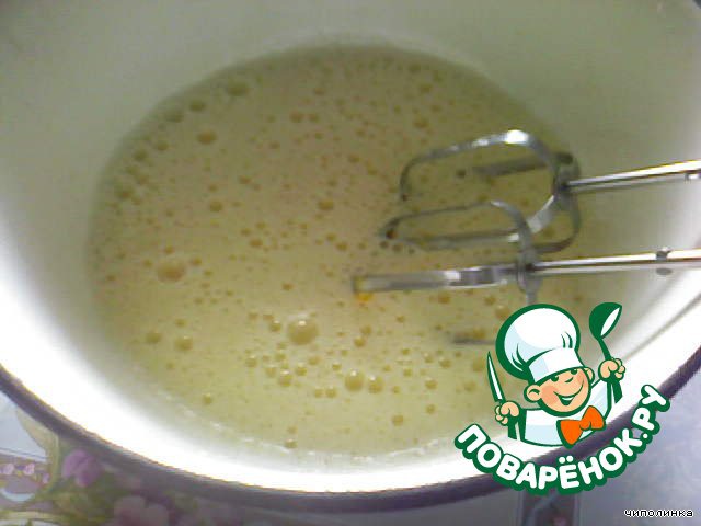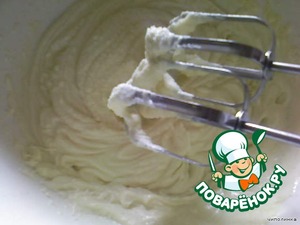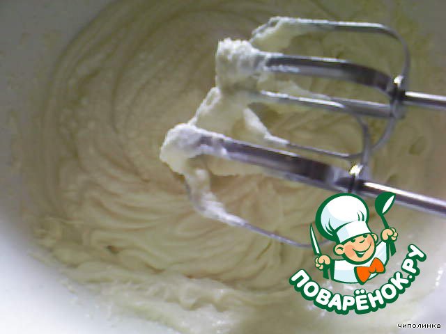 Муку, смешанную с разрыхлителем, ввести, при помешивании, в массу.