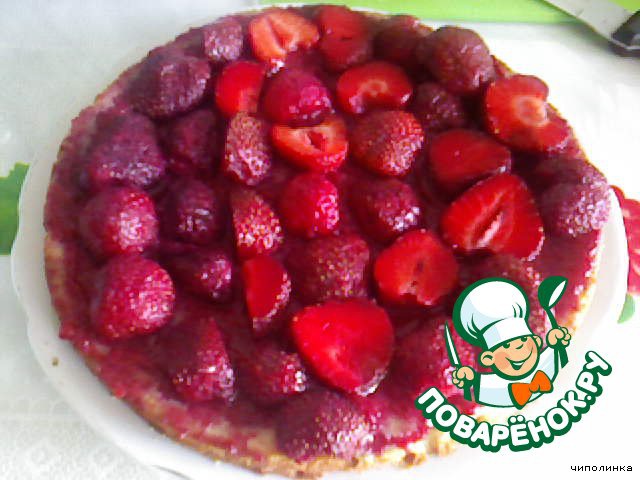 Сверху положить помытую и нарезанную ломтиками клубнику.