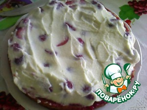 Нижнюю часть смазать клубничным вареньем.(Я брала свежую клубнику, перетёртую с сахаром). -